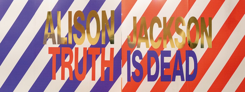 El treball d’Alison Jackson tracta sobre el voyeurisme, la nostra necessitat de creure i la simulació. Utilitza de manera intel·ligent actors o dobles de celebritats i personatges públics per produir paparazzis o fotografies d’estil documental convincentment realistes de les vides privades íntimes, sovint salaces, imaginades de moltes de les icones o persones conegudes més famoses i infames del món: Donald Trump, la família reial britànica, Marilyn Monroe, Kim i Kanye West, Elton John, David i Victoria Beckham, són només alguns dels personatges que apareixen a les seves obres.