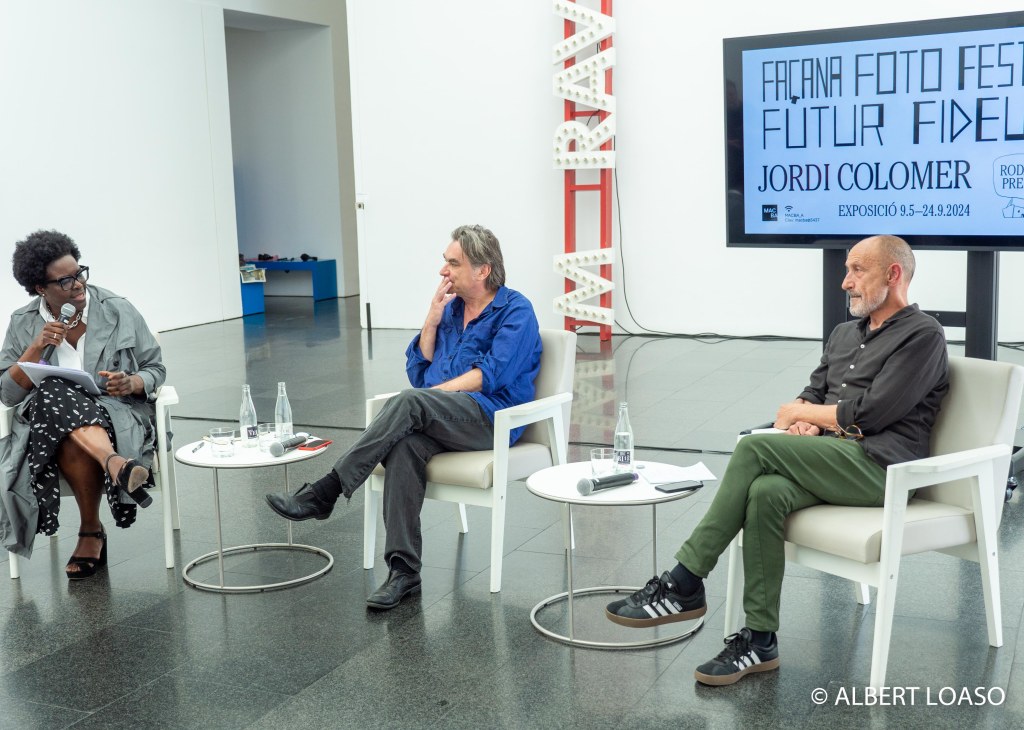 Amb el títol Jordi Colomer. Façana Foto Festa Futur Fideus, la mostra comissariada per Martí Peran aplega escultures, collages, instal·lacions, fotografia, vídeo i accions en viu realitzades des de finals dels anys vuitanta fins a l’actualitat per l’artista. L’exposició destarota l’ordre cronològic i proposa una contaminació entre geografies, relats, objectes i implicacions del públic dins i fora del museu.