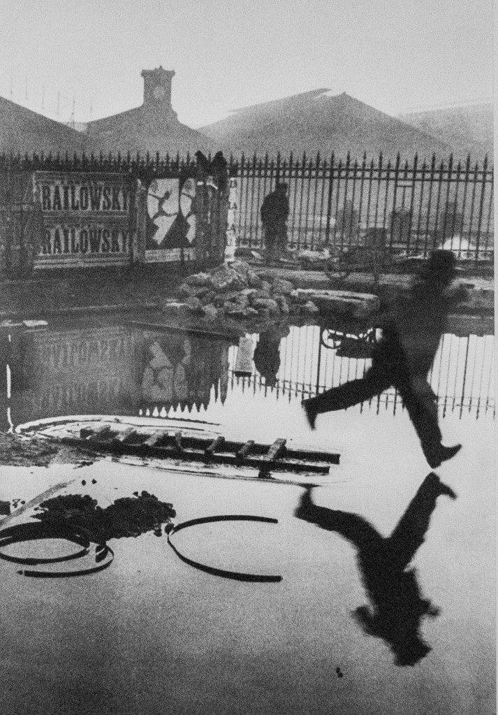 Cartier-Bresson té fama de ser un dels millors fotògrafs de carrer. El seu lema: «captar la vida en el moment». Va registrar amb una gran habilitat lúdica l’omnipresència de rètols publicitàris i de cartells i eslògans polítics en l’espai públic. Li interessava especialment situar les persones en juxtaposició amb aquests signes visuals, creant tot sovint composicions gairebé surrealistes.