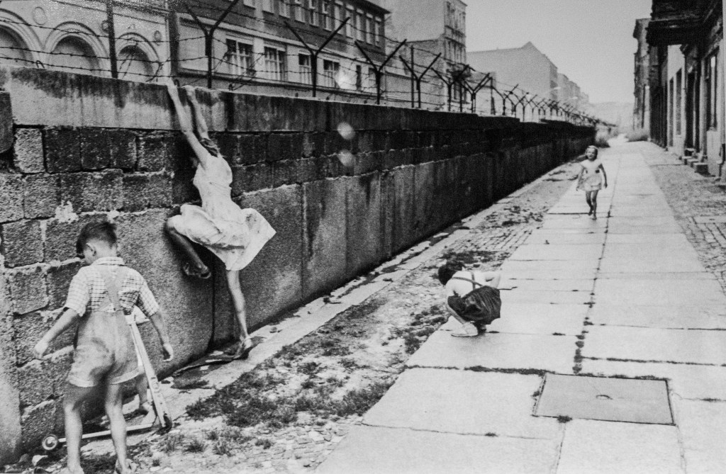 El mur de Berlín es va construir l’any 1961. Al cap d’un any, Cartier-Bresson va entrar al Berlín Est, que no era solament la primer línia de front de la Guerra Freda sinó també una metròpolis vibrant. Va fotografiar un paisatge urbà encara dominat per piles de runa.