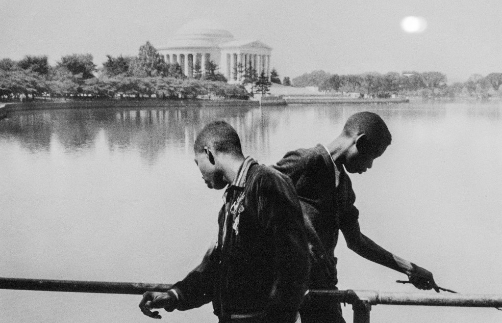 Cartier-Bresson va visitar Amèrica per primera vegada el 1935. A partir del 1947 hi va tornar diverses vegades quan encara estaven vigents les lleis de segregació racial. En aquells viatge la seva càmera va captar manifestacions d’afroamericans en contra