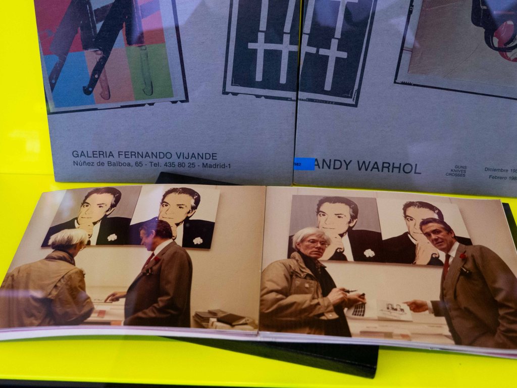 En la Fundación Suñol de Barcelona se ha presentado una exposición conmemorativa de la visita que Andy Warhol realizó en 1983 en Madrid, invitado (previo pago) por el galerista y admirador Fernando Vijande consiguió organizar una exposición que Warhol preparó exprofeso “Pistolas, Cuchillos y Cruces”. Esta exposición “Más que pistolas cuchillos y cruces” ha sido comisariada por Rodrigo Vijande, hijo de D. Fernando, para recordar lo avanguadista que fue D. Fernando por llevar la modernidad a España.