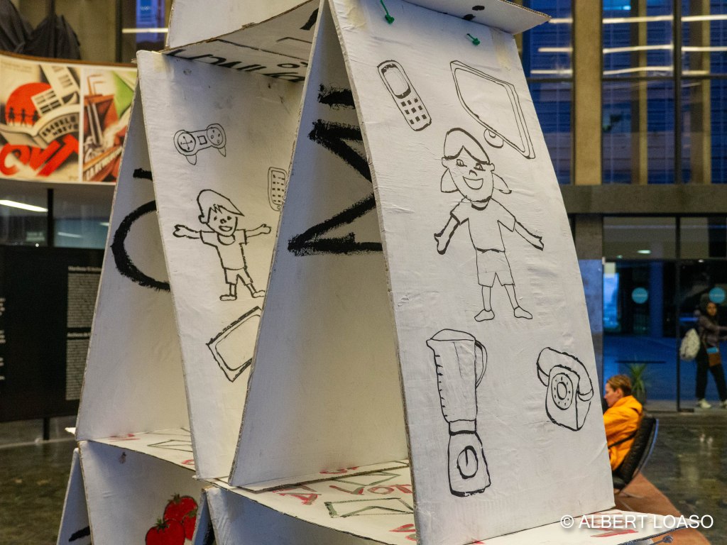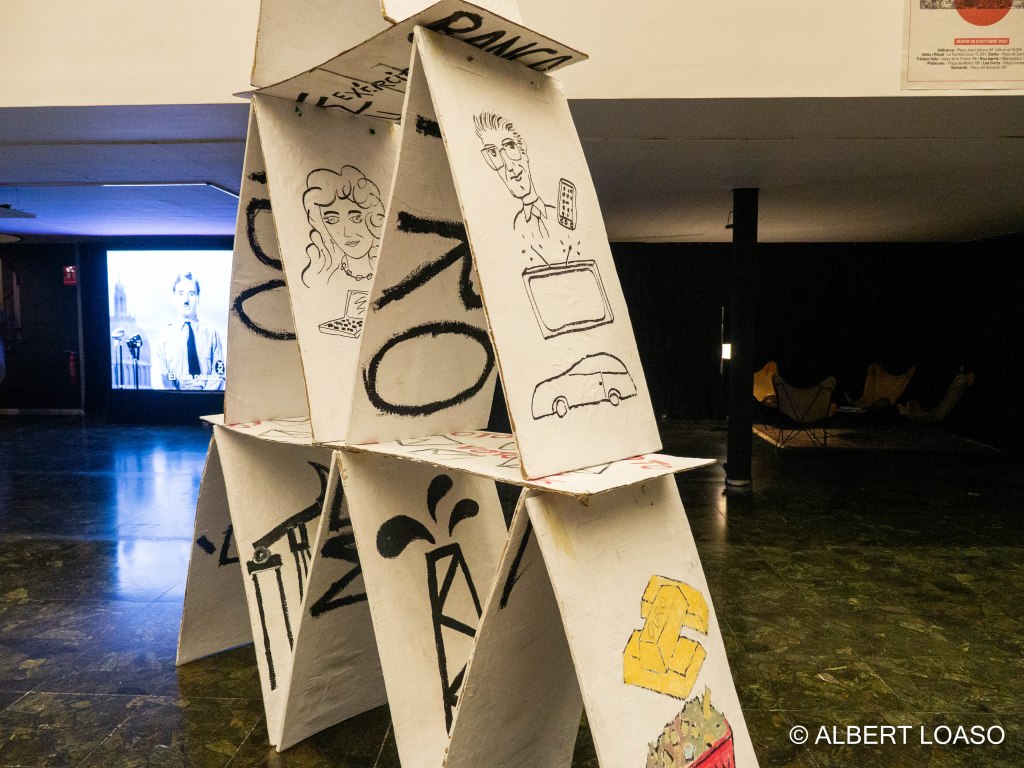 El maig de 2011, multituds ciutadanes van reclamar l’ús públic de la ciutat, la subordinació de l’economia al bé comú i l’enfortiment de les estructures polítiques democràtiques. El grup català de teatre en gallec Os Furafollas van fer una performance a la Plaça de Catalunya amb el Castell de Capitalisme que la base s’hi troben les matèries primeres i les fonts d’energia, a sobre el seu ús irresponsable que dona suport a una democràcia de consum i classes mitjanes. I, al seu cim, el sistema financer sostingut pel poder militar i tecnocràtic. Però el castell és fràgil i tremola! Quan cau, al seu revers es revela que “un altre món és possible”.