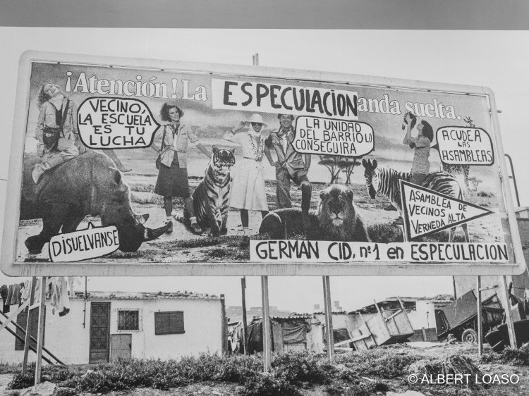 El 1966, Franco inaugura un grup d’habitatges a la Verneda Alta, destinada a la nova classe obrera migrant catalana. Se celebraven els XXV Años de Paz. Però des del 1970, el poderós moviment veïnal de Barcelona va lluitar feroçment per alliberar espais de l’especulació i construir parcs, places, escoles, instituts, ateneus, ambulatoris, residències i equipaments esportius. Manel Armengol capta aquesta fúria veïnal durant la primavera de 1976 i veiem com els veïns han ocupat una tanca publicitària d’El Corte Inglés.