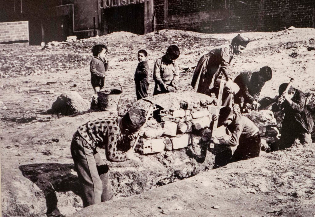 Infants gitanos en un descampat a tocar d’una platja de Barcelona, probablament relacionada amb la residència Passionària, centre d’acollida d’infants de l’Ajut Infantil de Reraguarda. Pérez de Rozas 1937