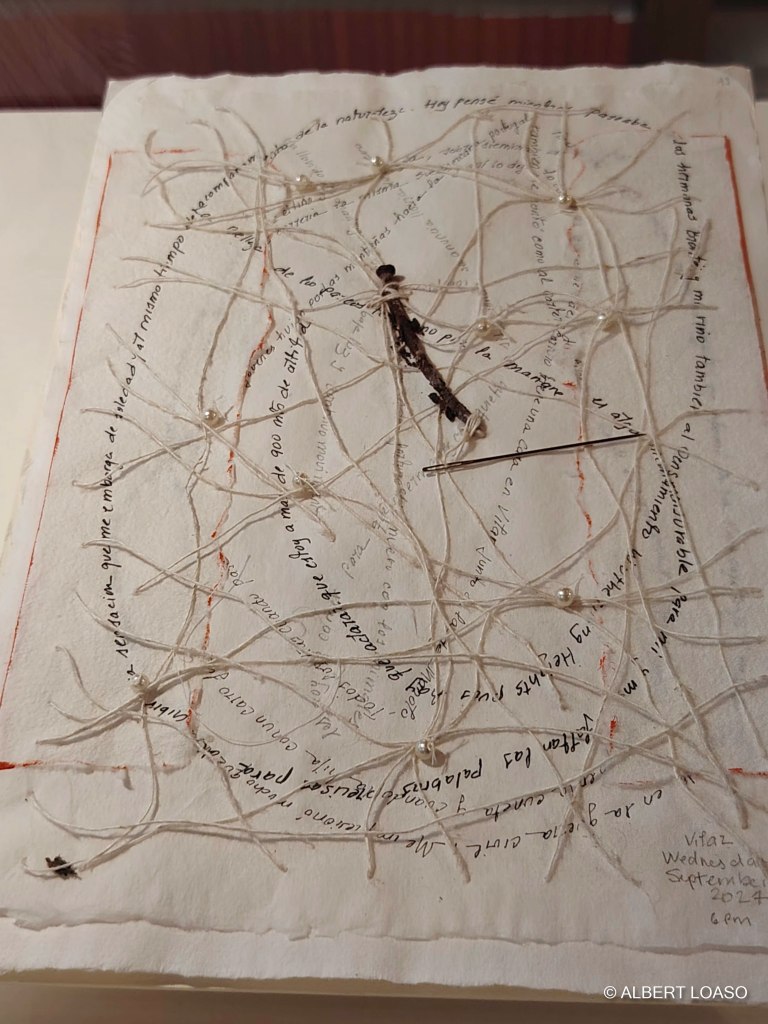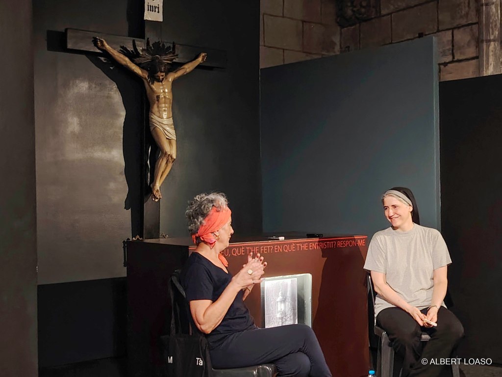 A mode de pregaria intel·lectual i teològica a la cripta dedica a la Santa Espina, Elena del Rivero i Teresa Forcades, monja benedictina, van establir una conversa que va tractar sobre les cartes d’Amelia i les perles com símbol d’allò que es produeix a causa d’una incomoditat.