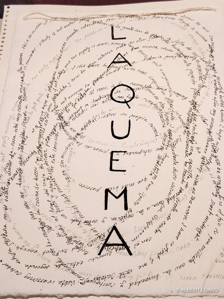 Transitar La Quema parteix d’una acció inicial desenvolupada en un poble gallec de la comarca de A Baixa Límia, en el marc de les accions impulsades per A Casa do Pozo. Aquest procés va ser documentat a través d’imatges i enregistraments sonors que han estat clau en la configuració del projecte actual. Les obres dels inicis de l’artista van ser cremades a l’octubre de 2024, després d’haver estat exposades a cases i espais del poble. Aquesta acció explora temàtiques com la destrucció simbòlica, la purificació i la renovació. Per aquesta instal·lació ha comptat amb la col·laboració d’alumnes de grau de l’escola EINA.