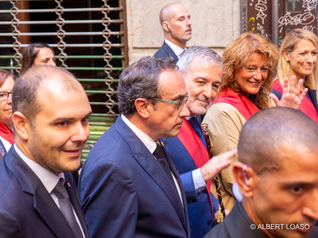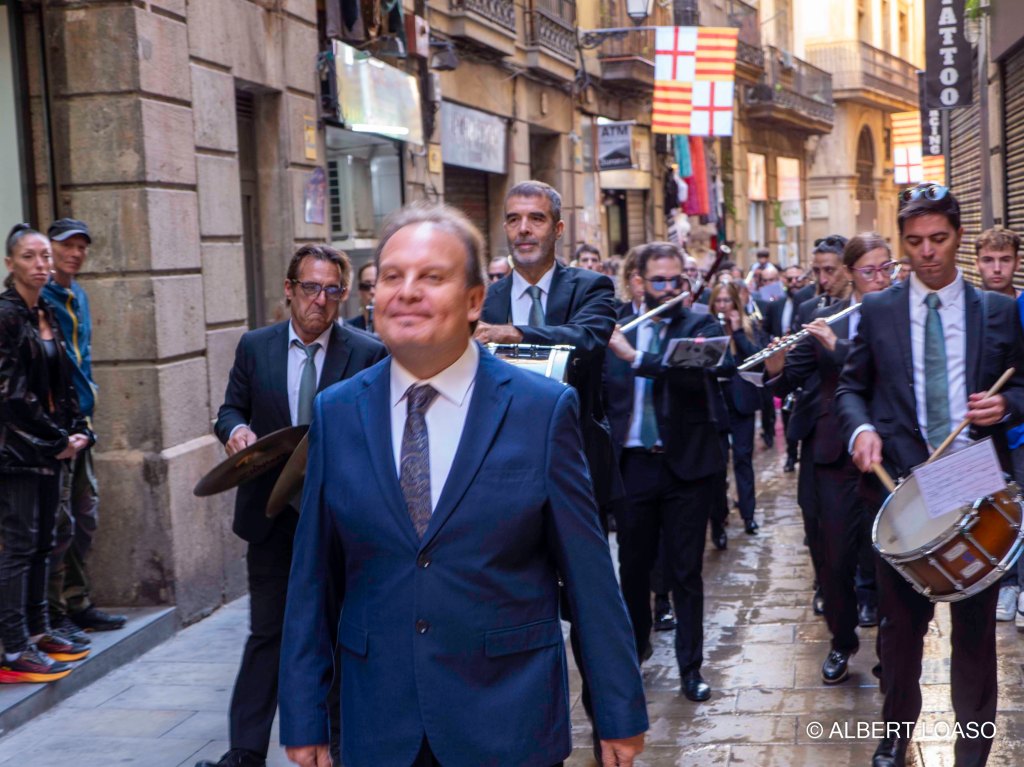 El seguici transcorre pels carrers del barri Gòtic i són encapçalats per la banda municipal de Barcelona, dirigida per en José Rafael Pascual-Vilaplana. Segueixen les autoritats, que enguany ho eren el President del Parlament de Catalunya En Josep Rull i el Batlle de Barcelona En Jaume Collboni.