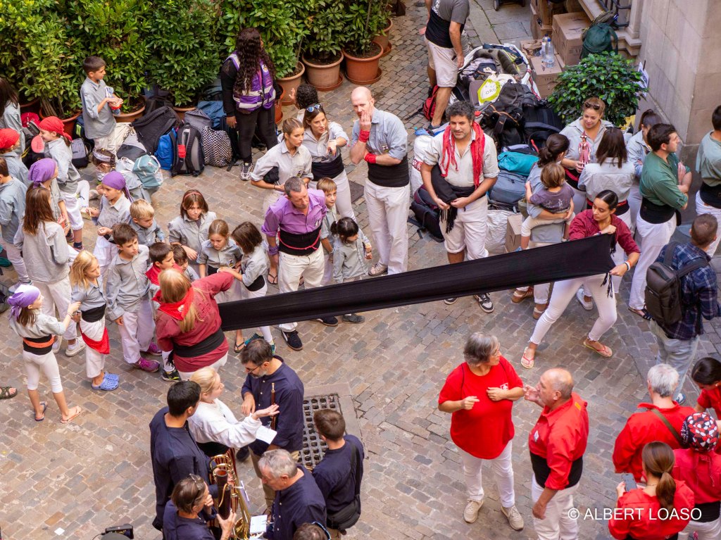 A l’arribada a la Plaça Sant Jaume, després del ball de gegants, les diverses colles de castellers de la ciutat han iniciat la diada castellera amb l’aixecament de pilars de quatre davant de l’Ajuntament, tot i saludant les autoritats. Les colles participants ha estat Castellers de Barcelona, Sants, Vila de Gràcia, Poble-Sec, Sagrada Família, Jove de Barcelona, Sarrià i Esquerdats de l’Eixample.