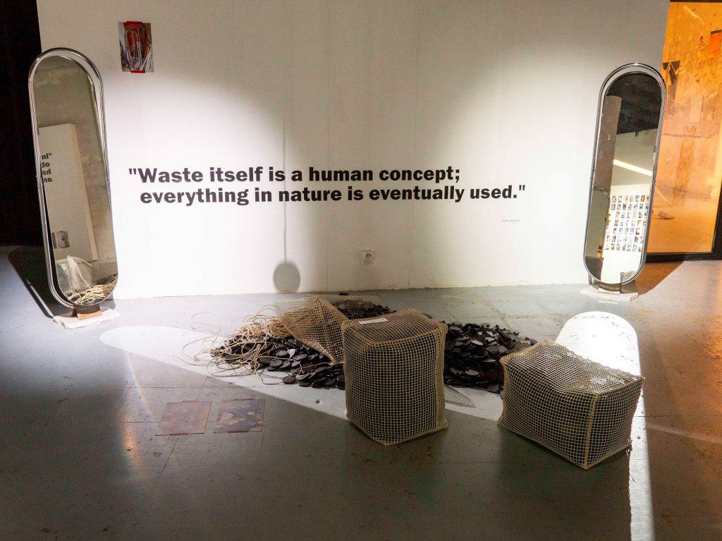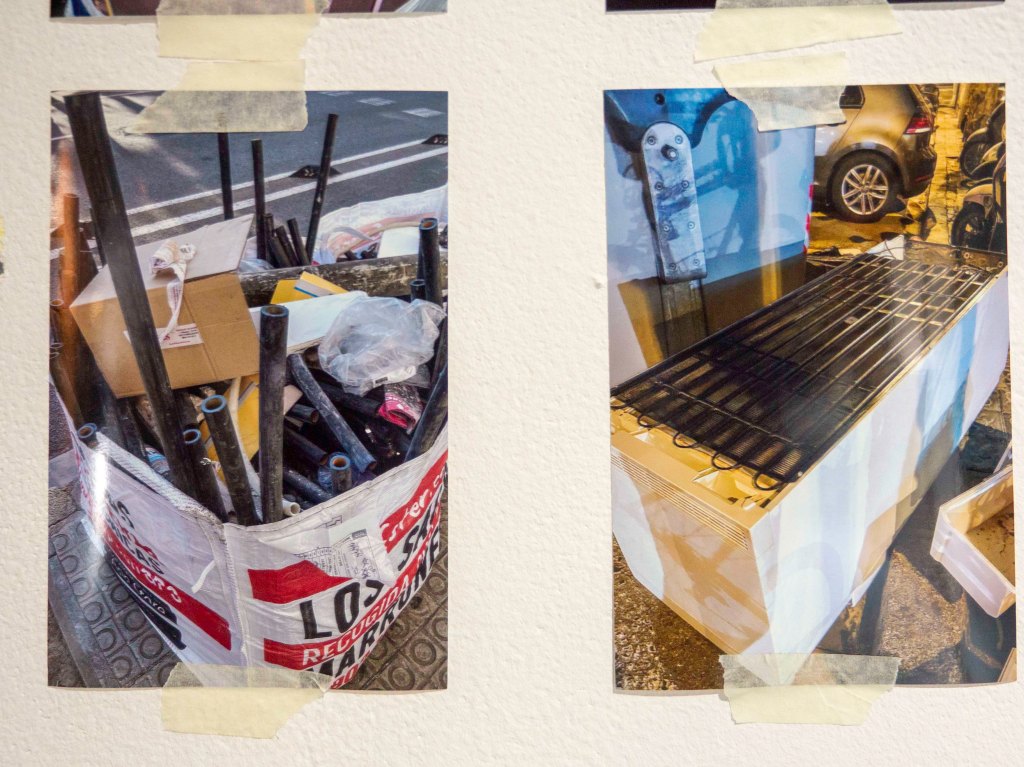 La exposición muestra los trabajos de ambos, tanto fotografías aisladas como materiales formando parte de un elemento rescatado de los residuos urbanos. Los dos nos muestran la realización de proyectos para repensar la utilidad de los objectos desechados y darles una nueva vida, utilidad o formar parte de una composición artística. Una primera exposición que puede dar frutos en próximas colaboraciones entre ambos.