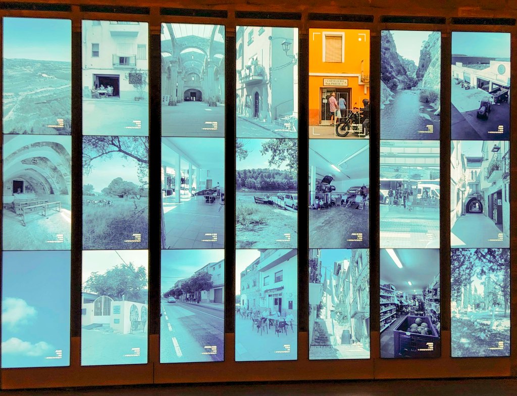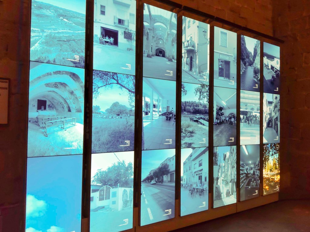 Dins de la capella s’ha instal·lat una multi pantalla que ens dona una mirada des del castell cap a les Terres de l’Ebre en que cada pantalla reprodueix un moment de la vida dels pobles i la seva gent.