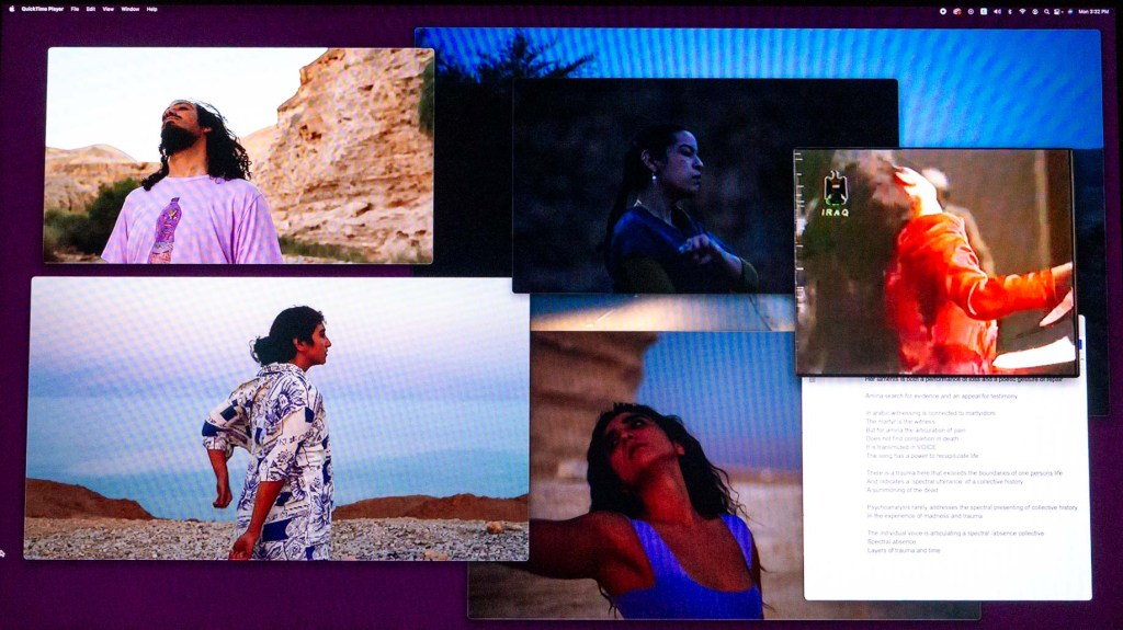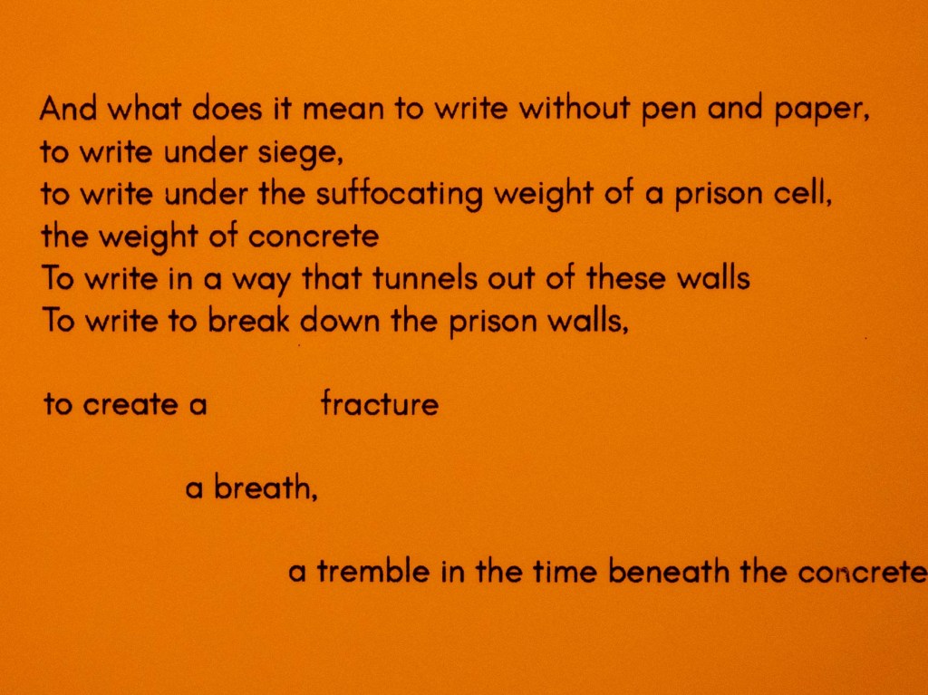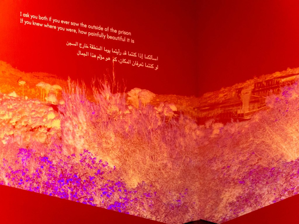 Presoners de l’amor. Fins al sol de la llibertat és una instal·lació que cobreix diferents espais i sales del MACBA que es basa en la recent investigació sobre la resiliència dels palestins empresonats a través del cant i la poesia.