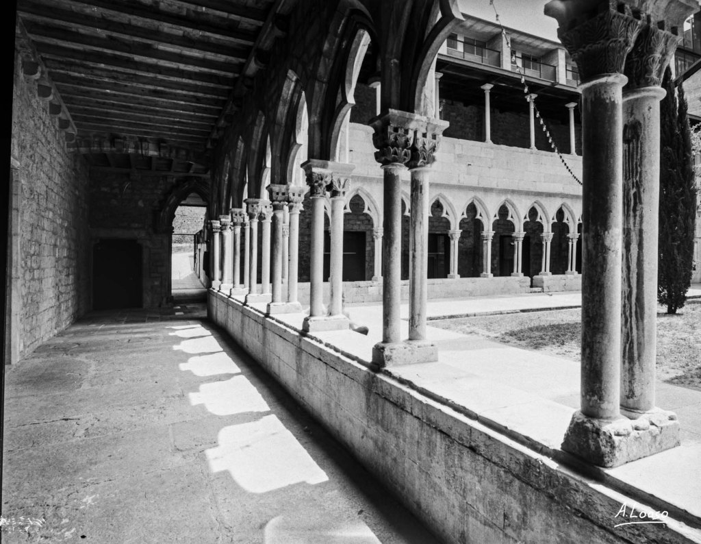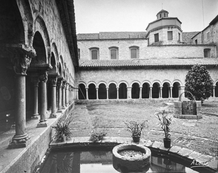 El claustre més proper de l’església és de finals del segle XIII i principis del XIV, representa una transició entre el romànic i el gòtic. Ara és un espai obert on a sota hi ha la cisterna a la que es baixa per una escala soterrània i feta amb les antigues làpides del claustre. Podria ser un antic passadís fora muralles.